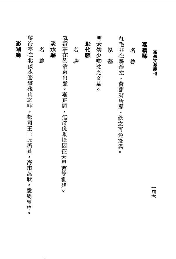 諸羅縣紅毛井,荷蘭時期挖鑿,相傳飲此井水,則不染疫癘 重修福建臺灣府志 卷十八 台灣文獻史料叢刊 -
