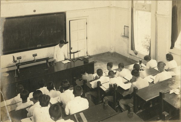臺北高等學校1938年第11屆理甲班學生在理化教室內上課時的情景 -