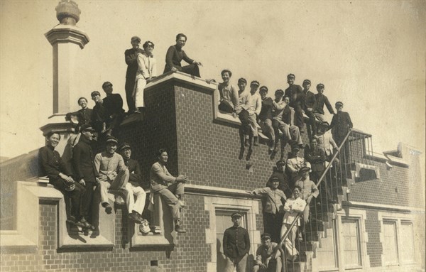 臺北高等學校1938年第11屆理甲班學生在理化教室的頂樓合影留念 -