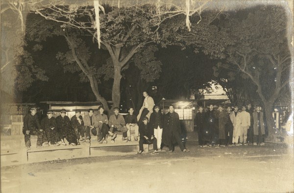 臺北高等學校1938年第11屆理甲班學生晚上在路邊攤販品嚐小吃的集體留影