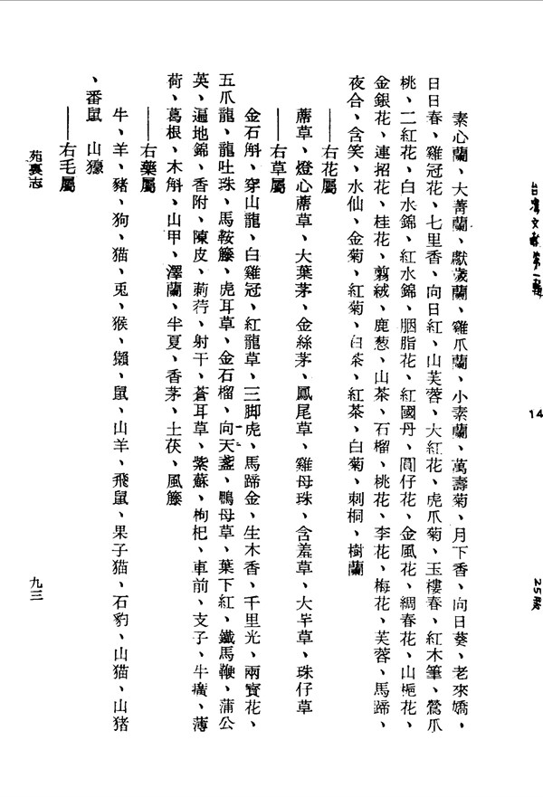 藥屬的草藥物產 樹杞林志 台灣文獻史料叢刊