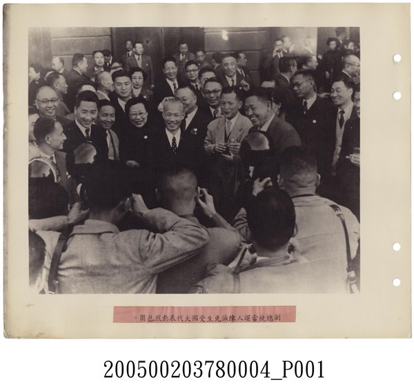 第一屆國民大會第二次會議珍輯《副總統當選人陳誠先生受國大代表熱烈包圍》照片 -