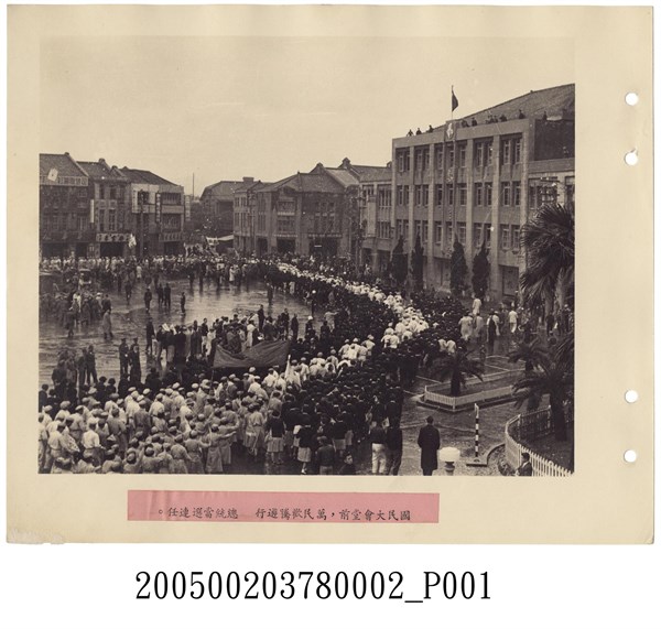 第一屆國民大會第二次會議珍輯《國民大會堂前民眾歡騰慶祝總統當選連任》照片 -