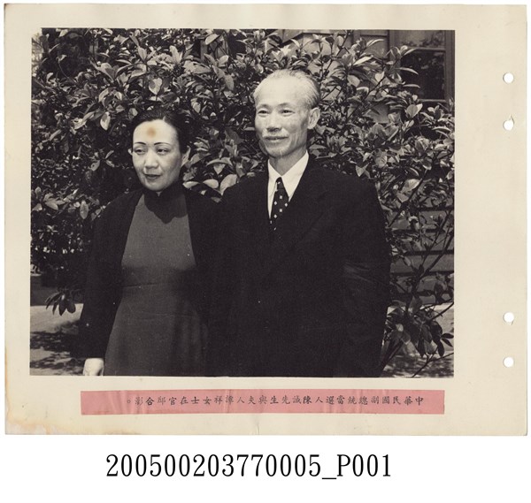 第一屆國民大會第二次會議珍輯《中華民國副總統當選人陳誠先生與夫人譚祥女士在官邸》照片 -