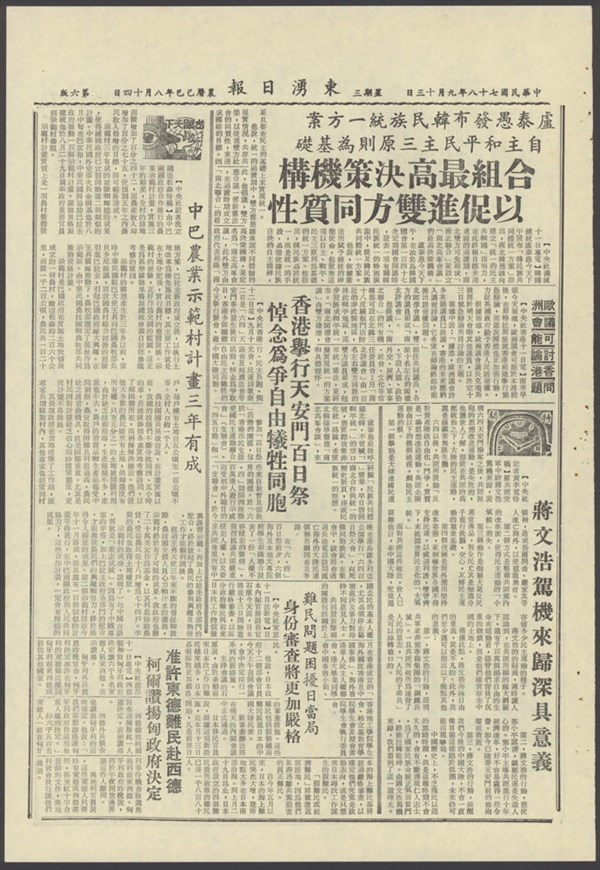 中華民國78年9月13日東湧日報第一一四八六期第六版 -