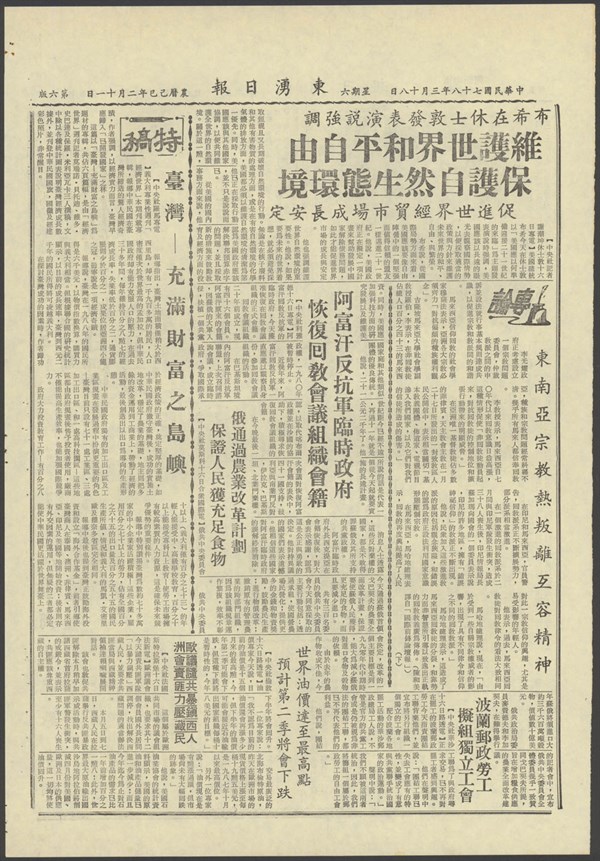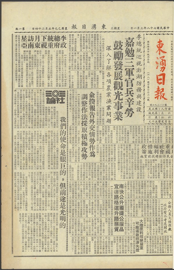 中華民國78年3月1日東湧日報第一一二九O期第一版 -