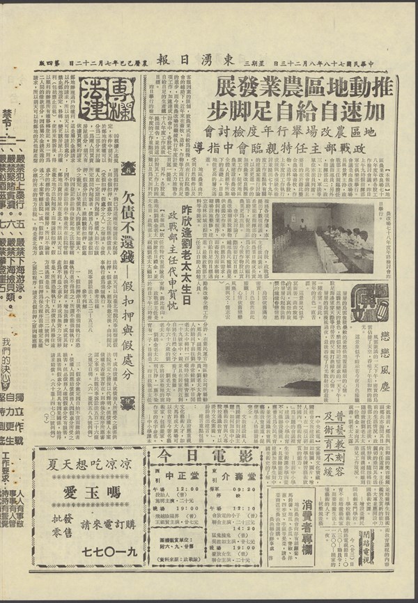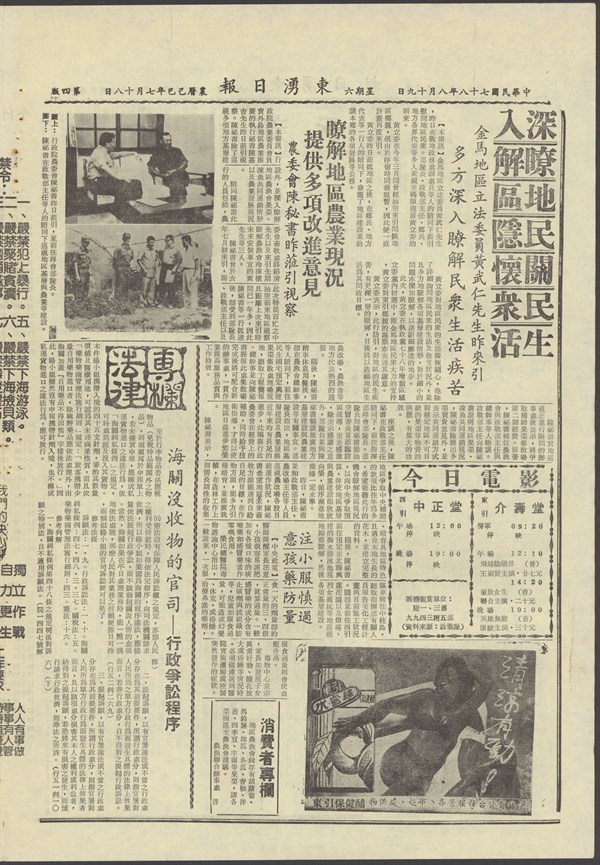 中華民國78年8月19日東湧日報第一一四六一期第四版 -
