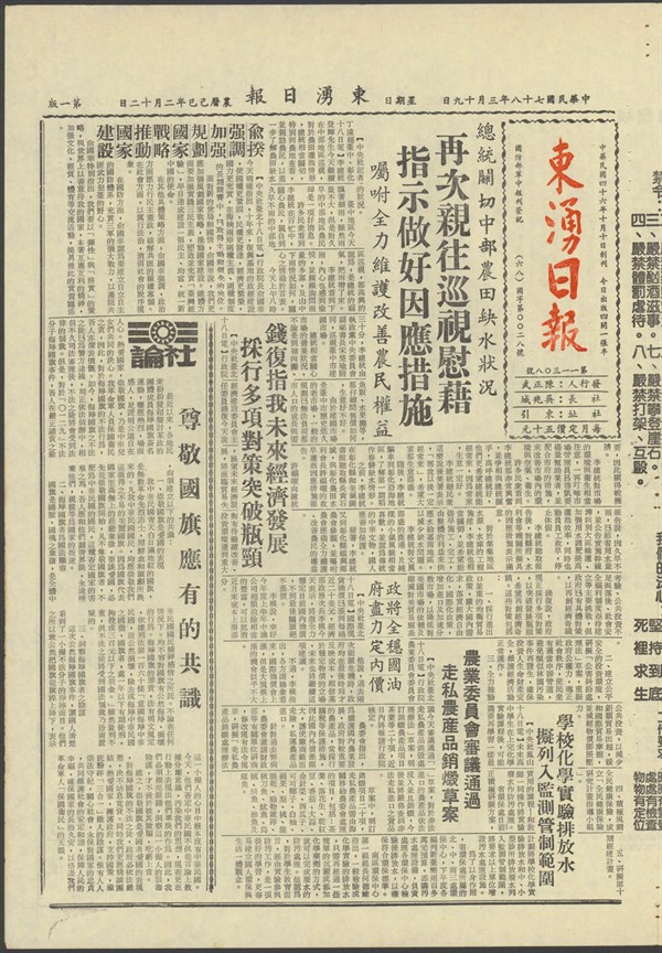 中華民國78年9月14日東湧日報第一一四八七期第一版 -