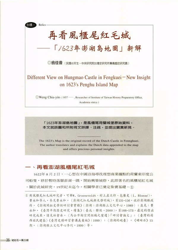 《硓古石》季刊第25期〈再看風櫃尾紅毛城——1623年澎湖島地圖新解〉 -