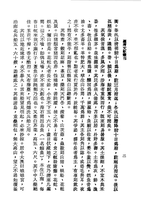 澎湖的物產種類 澎湖臺灣紀略 台灣文獻史料叢刊 -