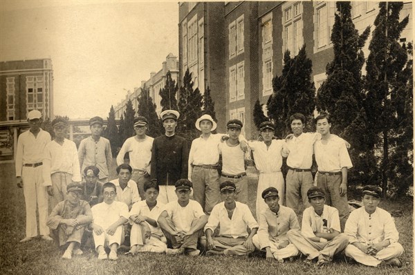 臺北高等學校1933年第6屆文甲班學生在理化教室旁的草坪上留影 -