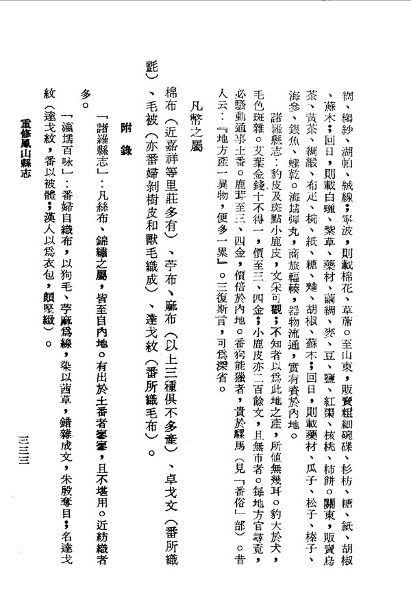 臺灣與山東等地的貿易項目包括藥材、茶葉 重修鳳山縣志卷十一 台灣文獻史料叢刊 -