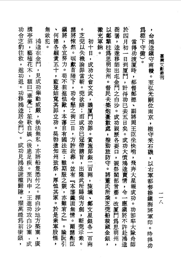鄭鴻逵在金門,擇白沙地築寨 臺灣外記卷三 台灣文獻史料叢刊 -