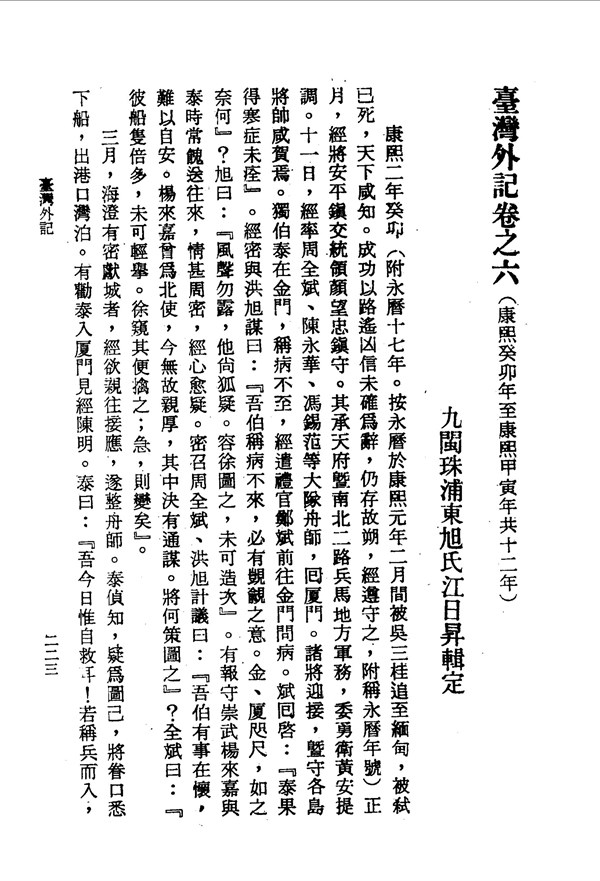 鄭泰在金門稱病不至 臺灣外記卷六 台灣文獻史料叢刊 -