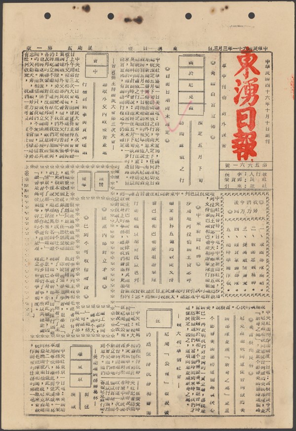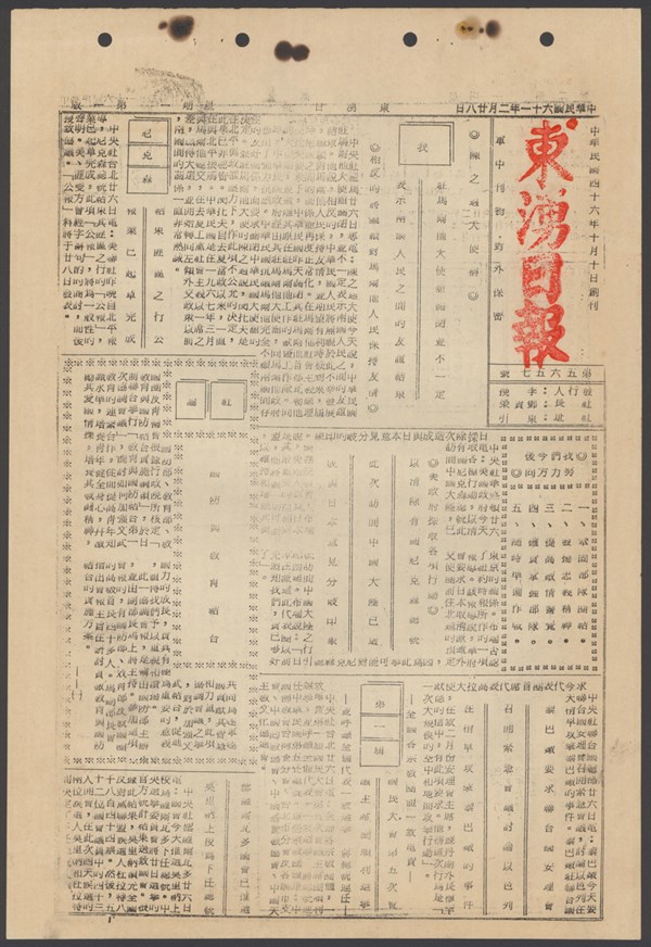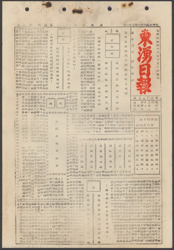 中華民國61年3月3日東湧日報第五六六一期第一版 -