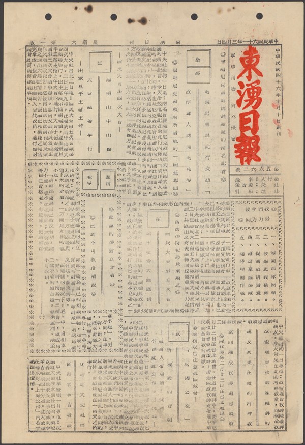 中華民國61年3月4日東湧日報第五六六二期第一版 -