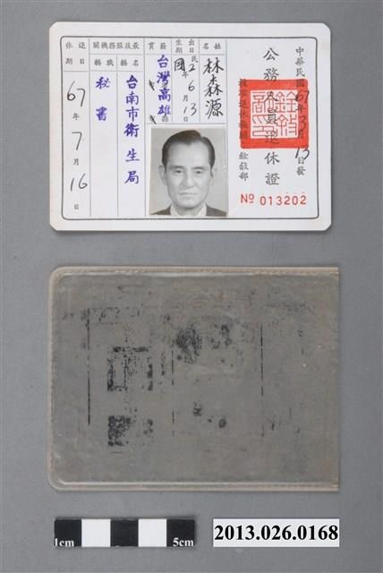 1976年1月15日林森源為台南市衛生局秘書之服務證明書 -
