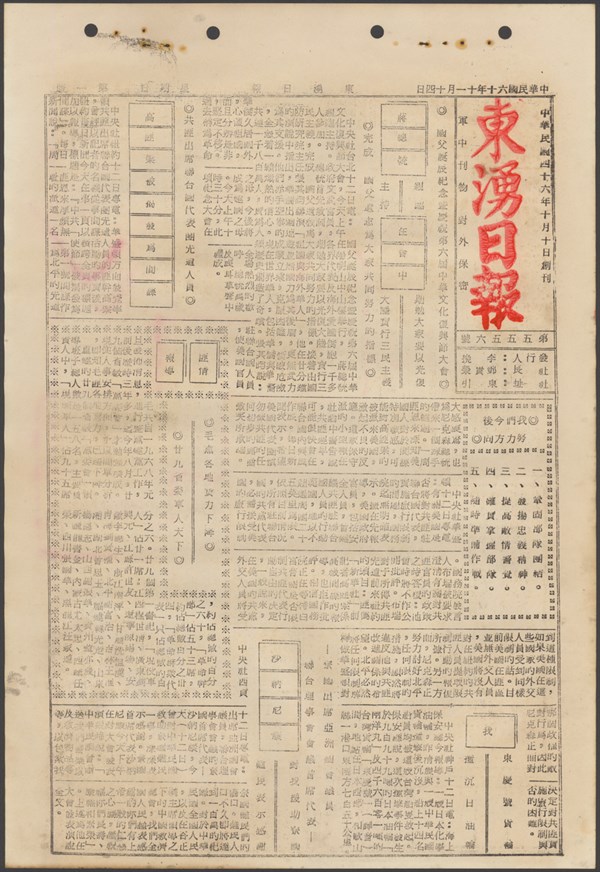 中華民國60年11月14日東湧日報第五五五六期第一版 -