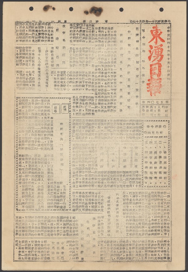 中華民國61年7月2日東湧日報第五七七九期第一版