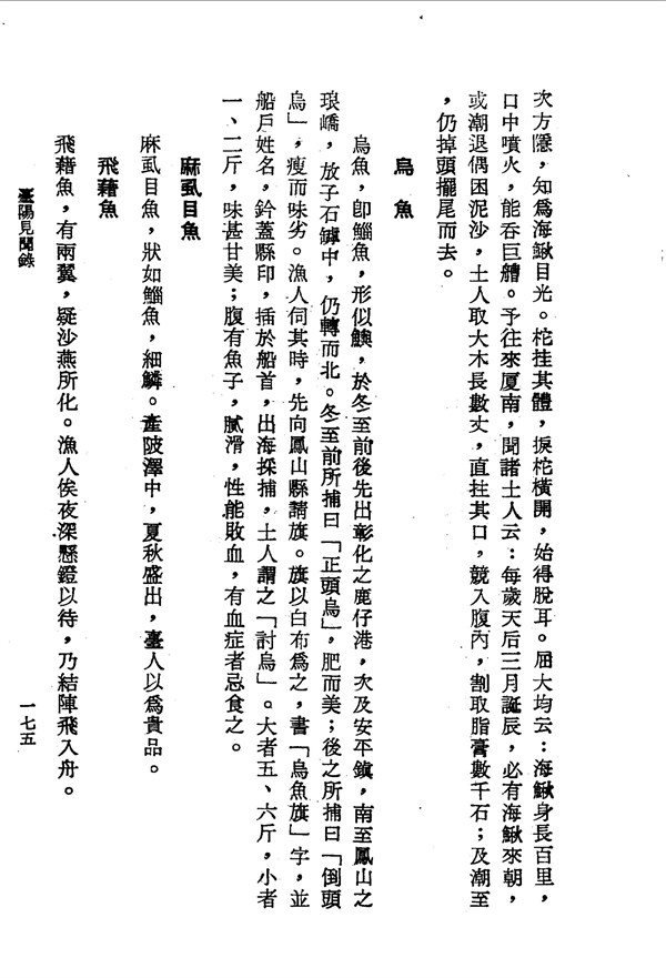 烏魚子性能敗血,有血症者忌食 臺陽見聞錄卷下 台灣文獻史料叢刊 -