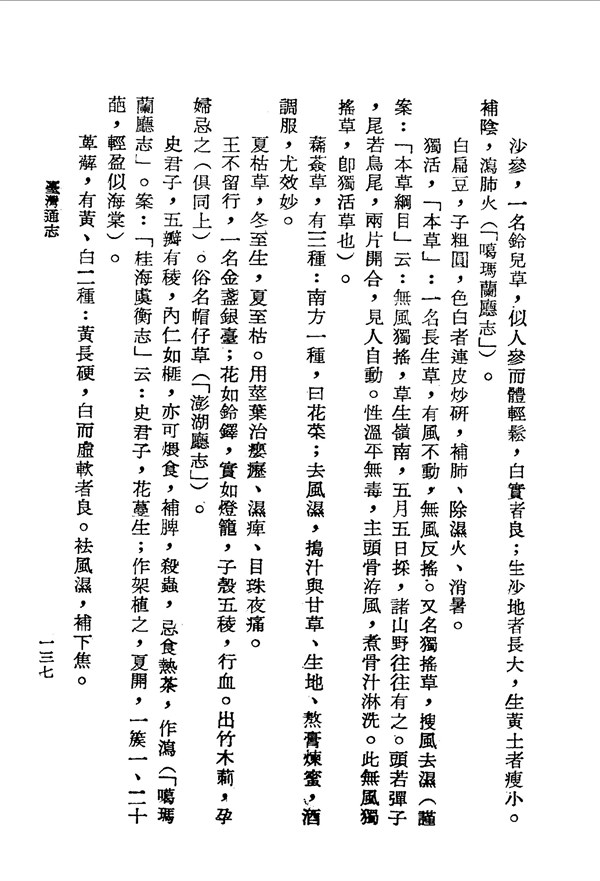 夏枯草治癭癧、濕痺 臺灣通志 台灣文獻史料叢刊 -