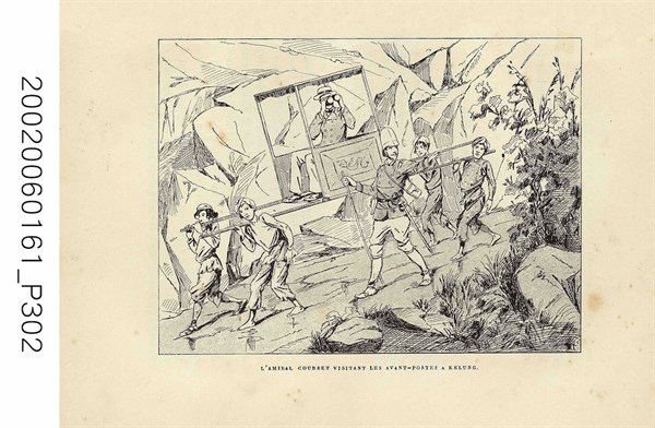 《北圻與中國海:回憶與插圖(1883-1885)》(Tonkin et dans les mers de Chine : souvenirs et croquis (1883-1885)):訪視基隆前線的孤拔將軍 -