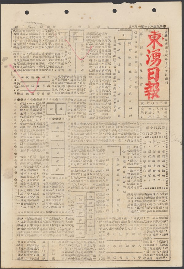 中華民國61年3月7日東湧日報第五六六五期第一版