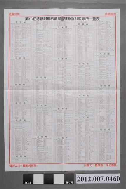 雲林縣選舉委員會印發《第13任總統副總統選舉選舉公報》 -