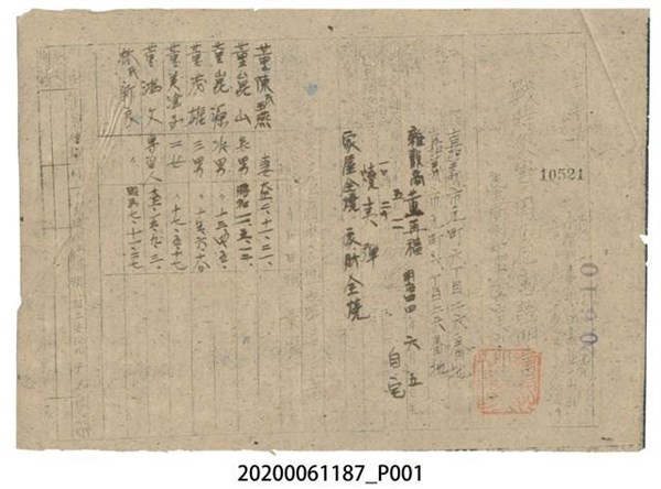 戰時造成的意外災害證明書第10521號(昭和20年6月10日發行) -