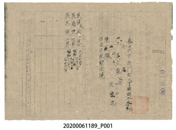 戰時造成的意外災害證明書第10523號(昭和20年6月10日發行) -