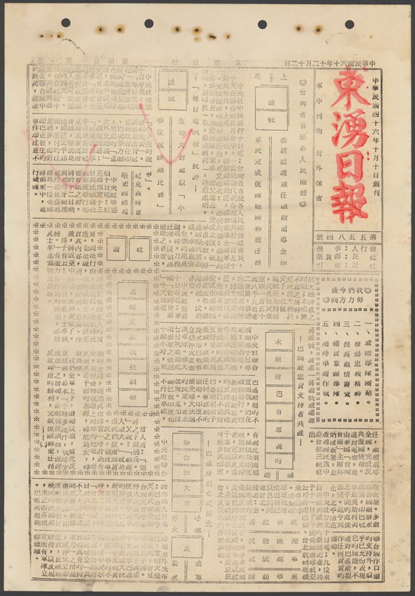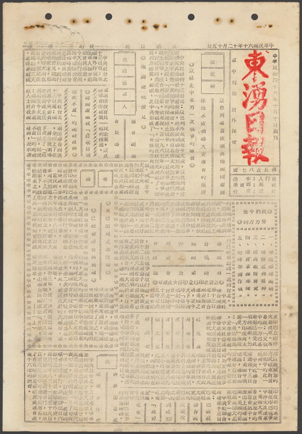 中華民國60年12月15日東湧日報第五五八七期第一版 -