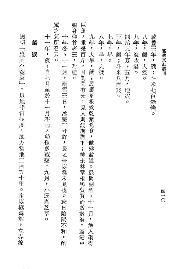 咸豐年間飢荒、大瘟疫,米價高昂 金門志卷十六 台灣文獻史料叢刊 -