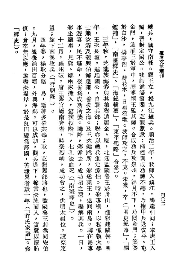 鄭彩坐在廳堂看到熊、鄭兩家人湧入,驚嚇而撲倒在台階下,七孔流血而死 金門志卷十六 台灣文獻史料叢刊 -
