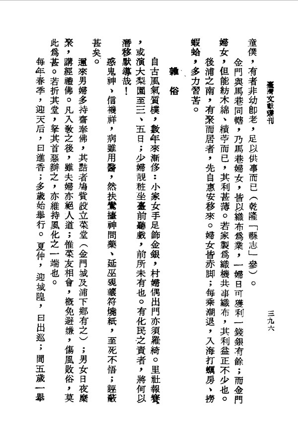 連年飢荒瘟疫,斗米昂貴民食海菜 金門志卷十六 台灣文獻史料叢刊 -
