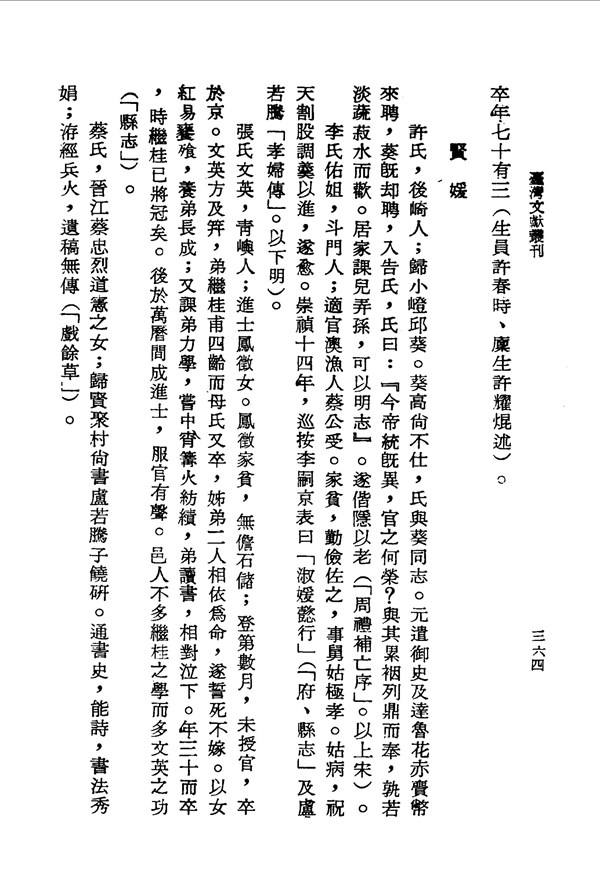 李氏佑姐嫁給蔡公受,姑病向上天祈禱,割股調羹以進而癒。 金門志卷十三 台灣文獻史料叢刊 -
