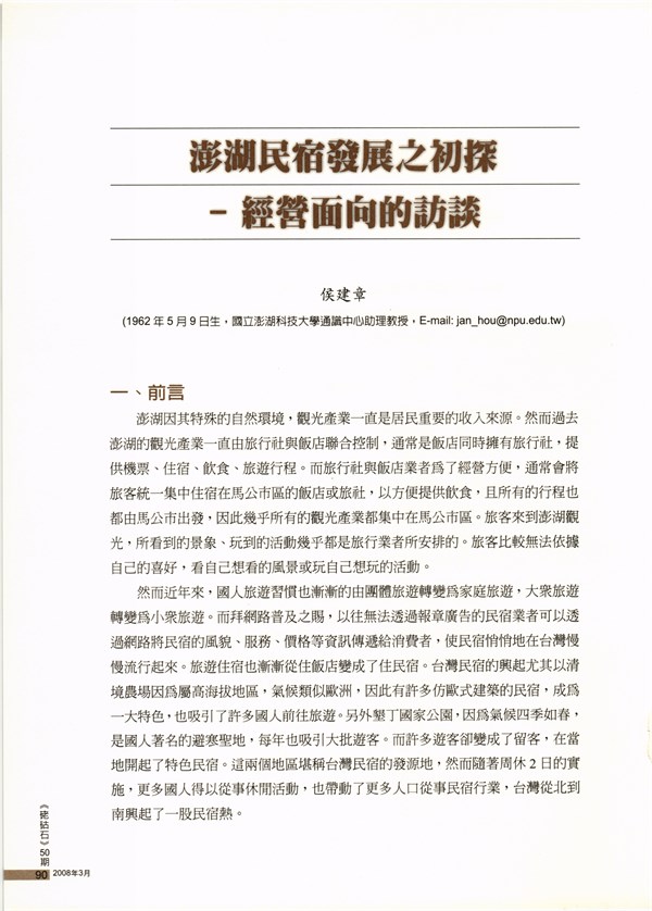 《硓古石》季刊第50期〈澎湖民宿發展之初探—經營面向的訪談〉