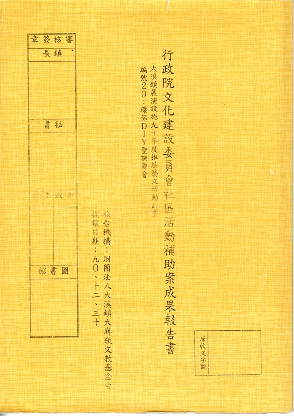 行政院文化建設委員會社區活動補助案成果報告書大溪鎮展演設施九十年度推展藝文活動計畫編號20:環保DIY聖誕舞會 -