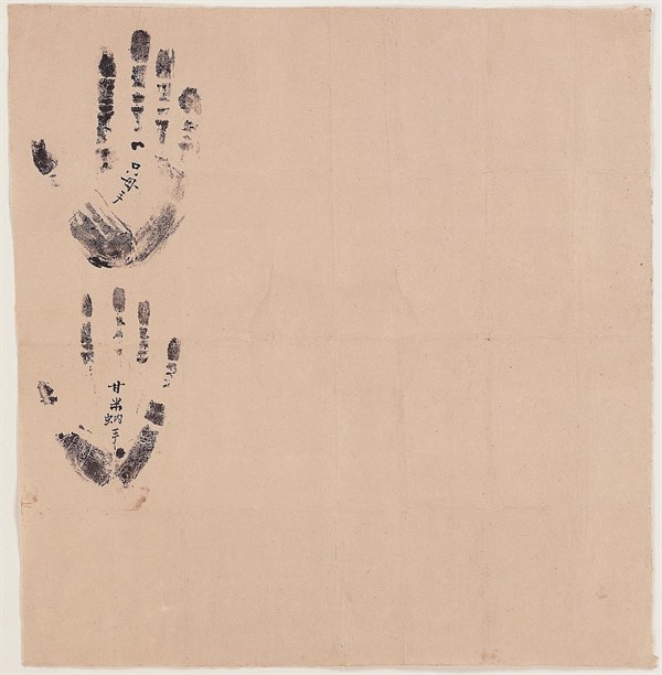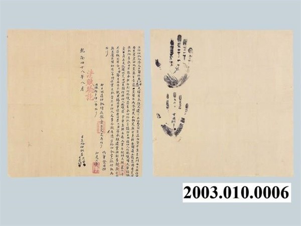 乾隆48年北港毛少翁社番只母及甘□蚋夫婦立給佃批附件手模 -