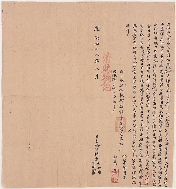乾隆48年北港毛少翁社番只母及甘□蚋夫婦立給佃批 -