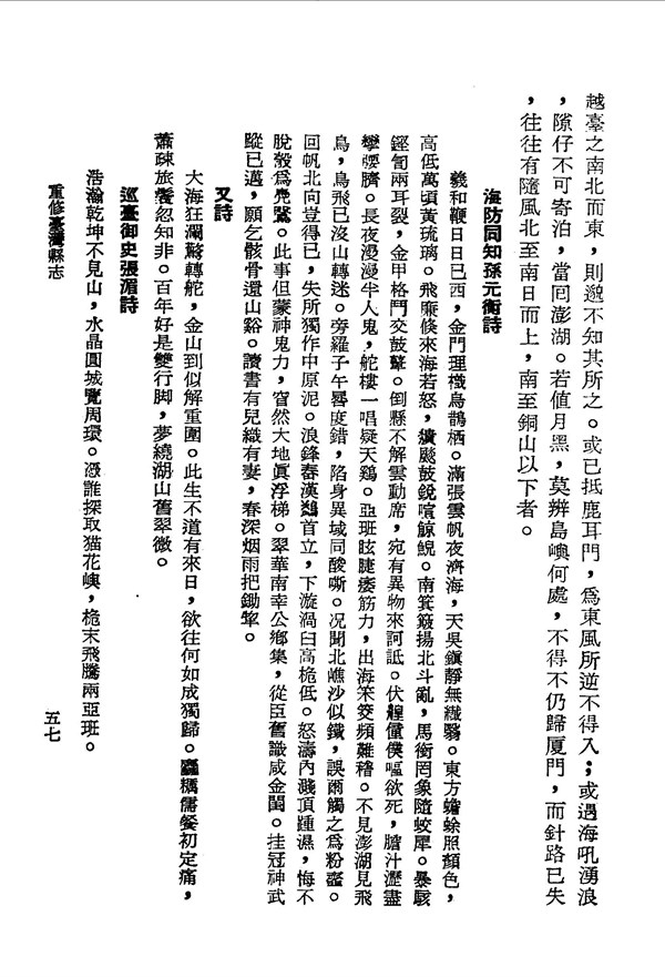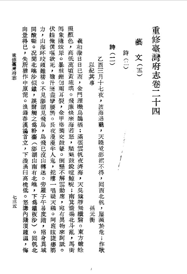 海防同知孫元衡詩 重修臺灣縣志卷二 台灣文獻史料叢刊 -