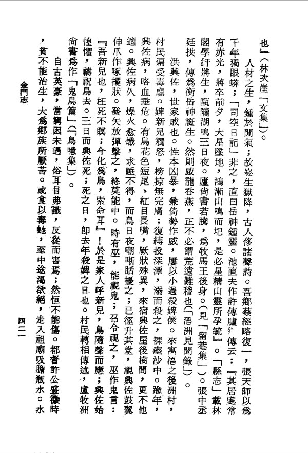洪興佐本性兇暴倚勢作威,屢次因小過失而殺死奴婢,巫作鬼言今化為鳥索命,最後病死 金門志卷十六 台灣文獻史料叢刊 -