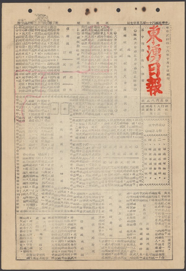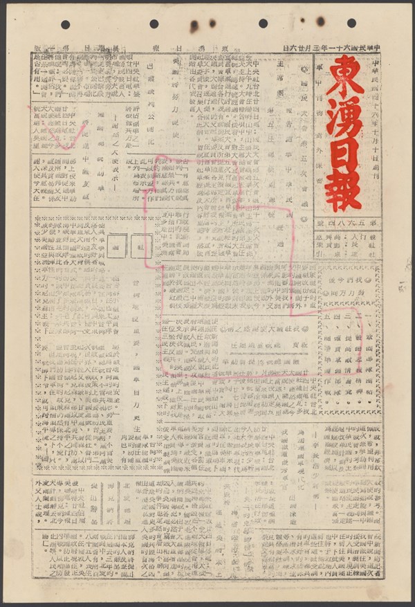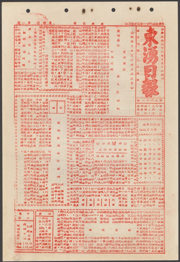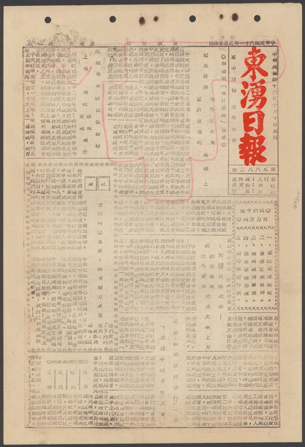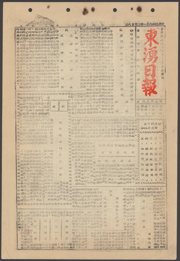 中華民國61年3月28日東湧日報第五六八六期第一版 -