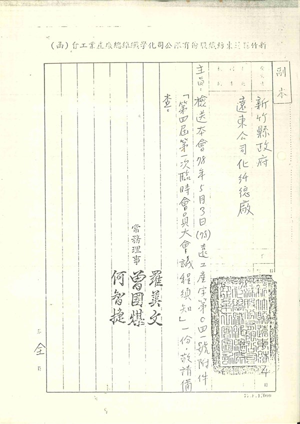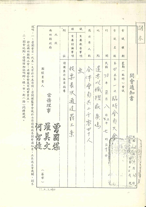 遠化工會史料:遠東化纖工會召開第四屆第一次臨時會員大會之通知 -