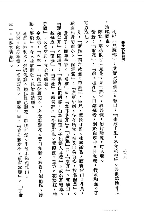 蒼耳子可散風濕 噶瑪蘭廳志卷六 台灣文獻史料叢刊 -