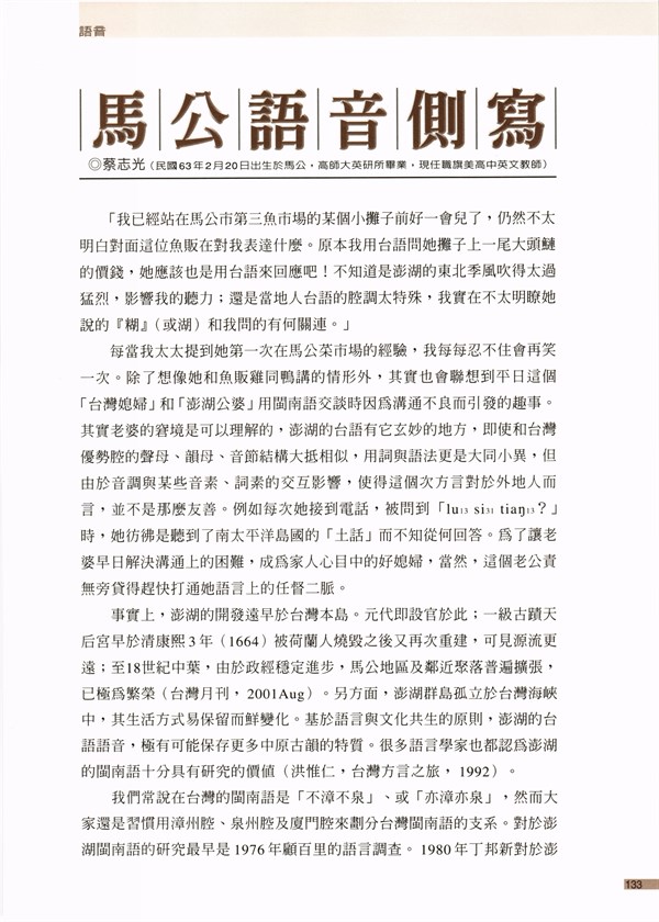 《硓古石》季刊第36期〈馬公語音側寫〉 -