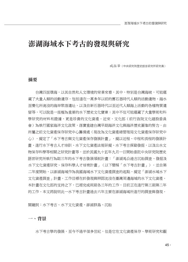 《澎湖研究學術研討會論文輯》第十三屆〈澎湖海域水下考古的發現與研究〉 -
