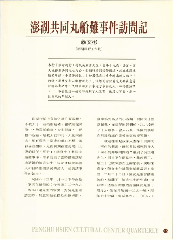 《硓古石》季刊第3期-澎湖共同丸船難事件訪問記 -