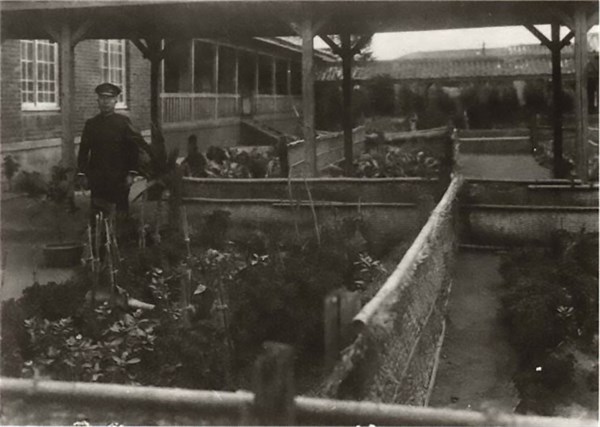 增田校長攝於馬公國民學校花壇