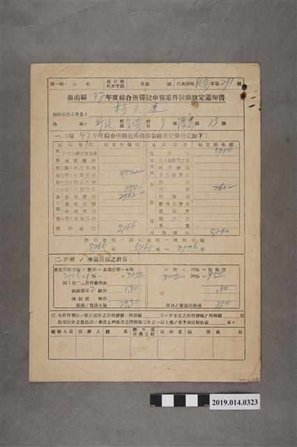 柯天送臺南縣47年度綜合所得稅申報案件稅額核定通知書
