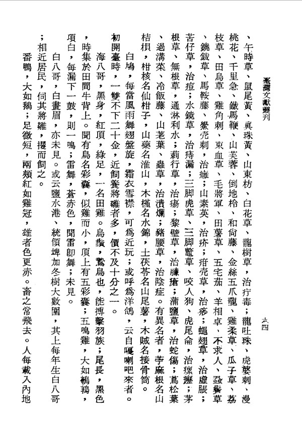 草藥的別名 臺海使槎錄卷三 台灣文獻史料叢刊 -